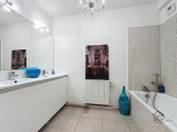 Salle de bain avec baignoire, double vasque, sèche-serviette